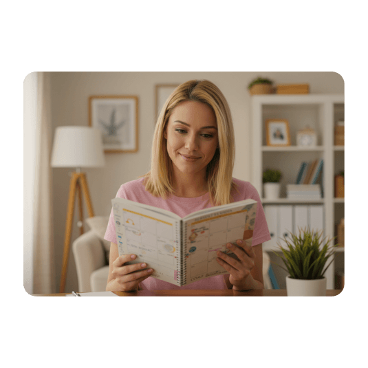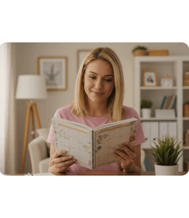 Você terá acesso ao planner guiado de organização diária que te conduzirá de forma simples e leve para planejar o seu dia, aliviando a mente e conseguindo dar conta de tudo que precisa ser feito.